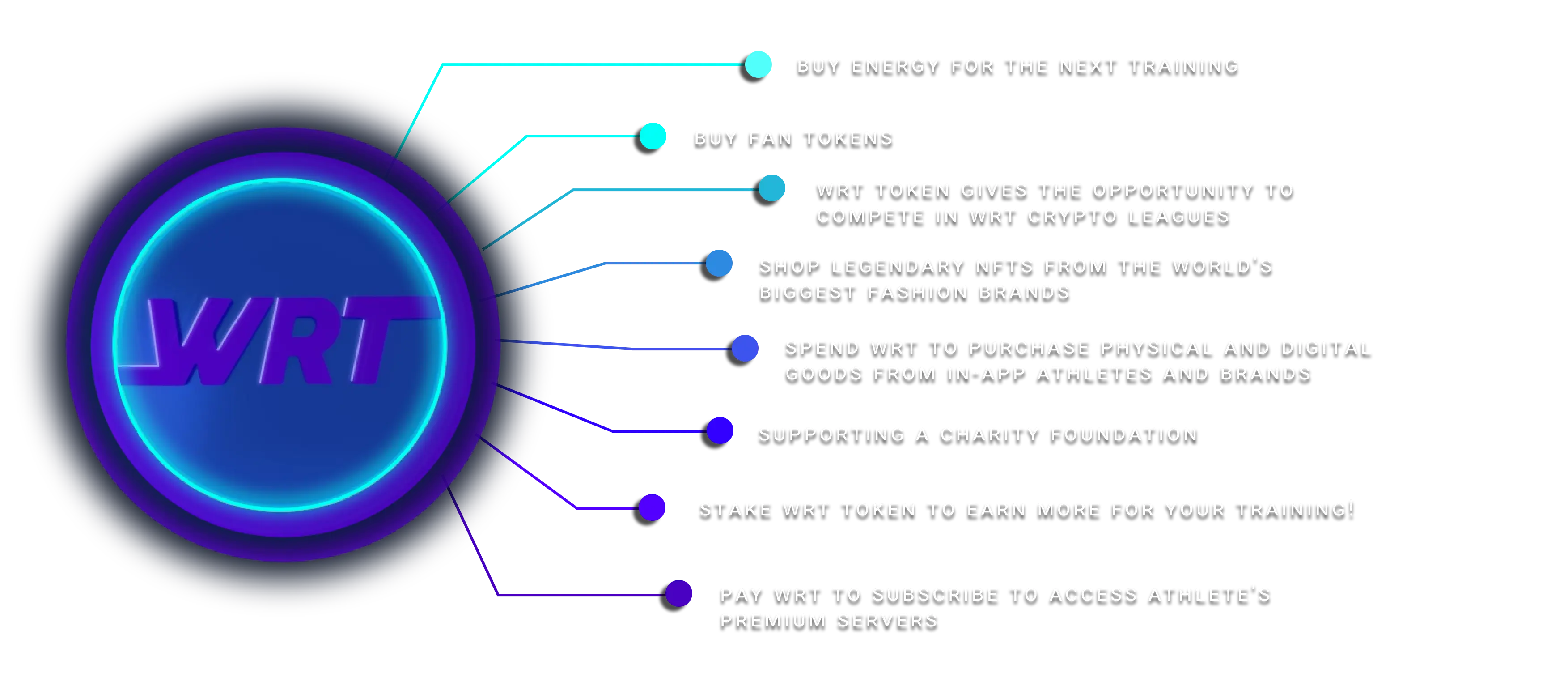 The WRT token ecosystem is constructed in a deflationary way, its supply will decrease from 15 billion to 5 billion tokens over time. Part of the profits from the NFTs sale, fan tokens and fees, goes to buy-backs and burn. This will secure the price stability of the token.